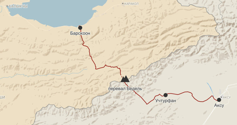 Prospective Barskoon-Uchturfan-Aksu road to China