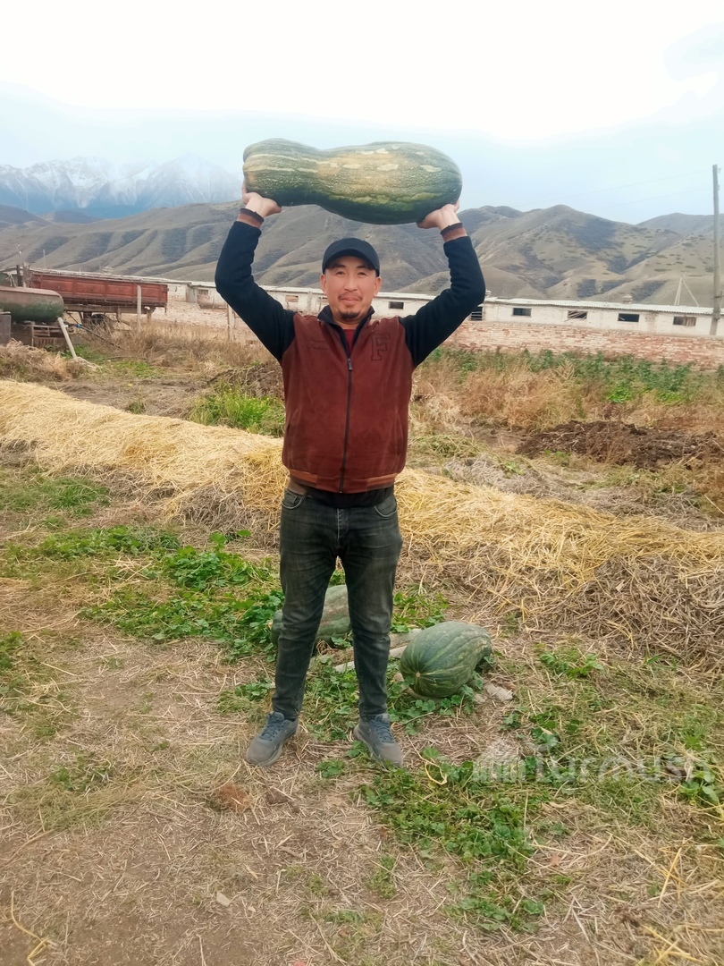 AKIPRESS.COM - A resident of the village of Saruu, Jeti-Oguz district of Issyk-Kul region, Turarbek Janbolatov, grew a pumpkin that is about one meter long.