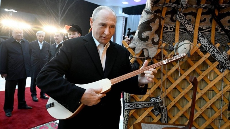Putin tries playing the komuz during visit to Kyrgyzstan