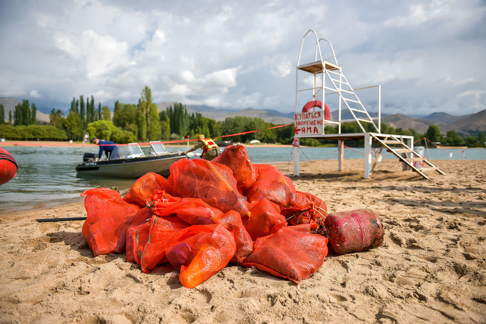 Cleaning of Issyk-Kul Lake bottom from trash and fishing nets goes on