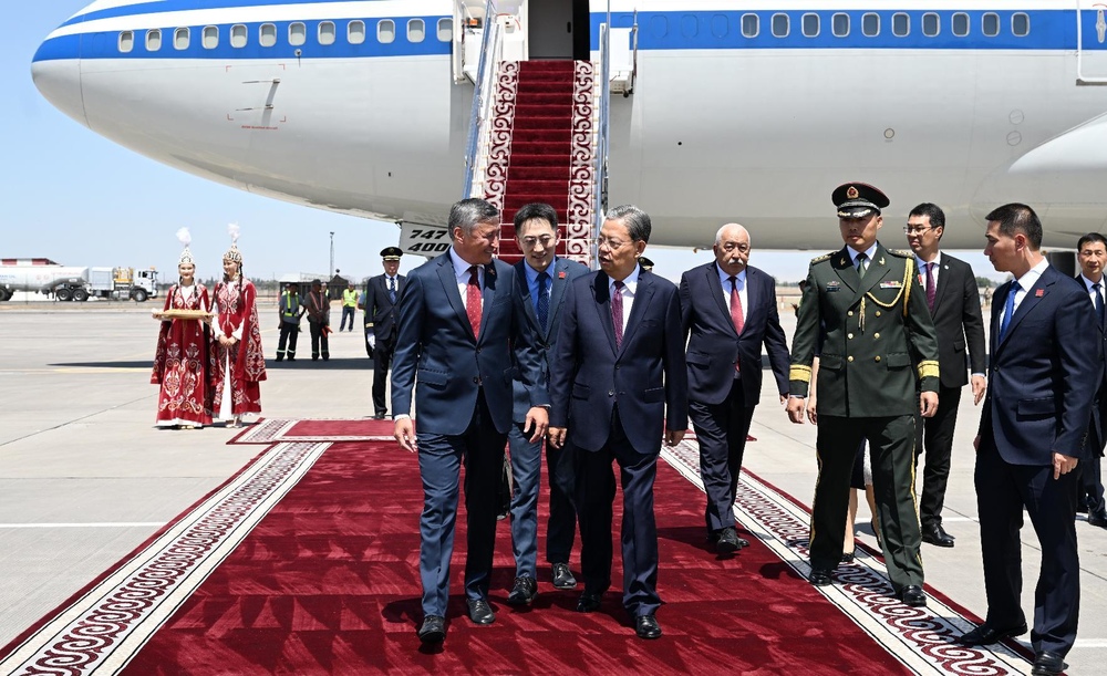 Chairman of China's NPC Standing Committee arrives in Kyrgyzstan for official visit